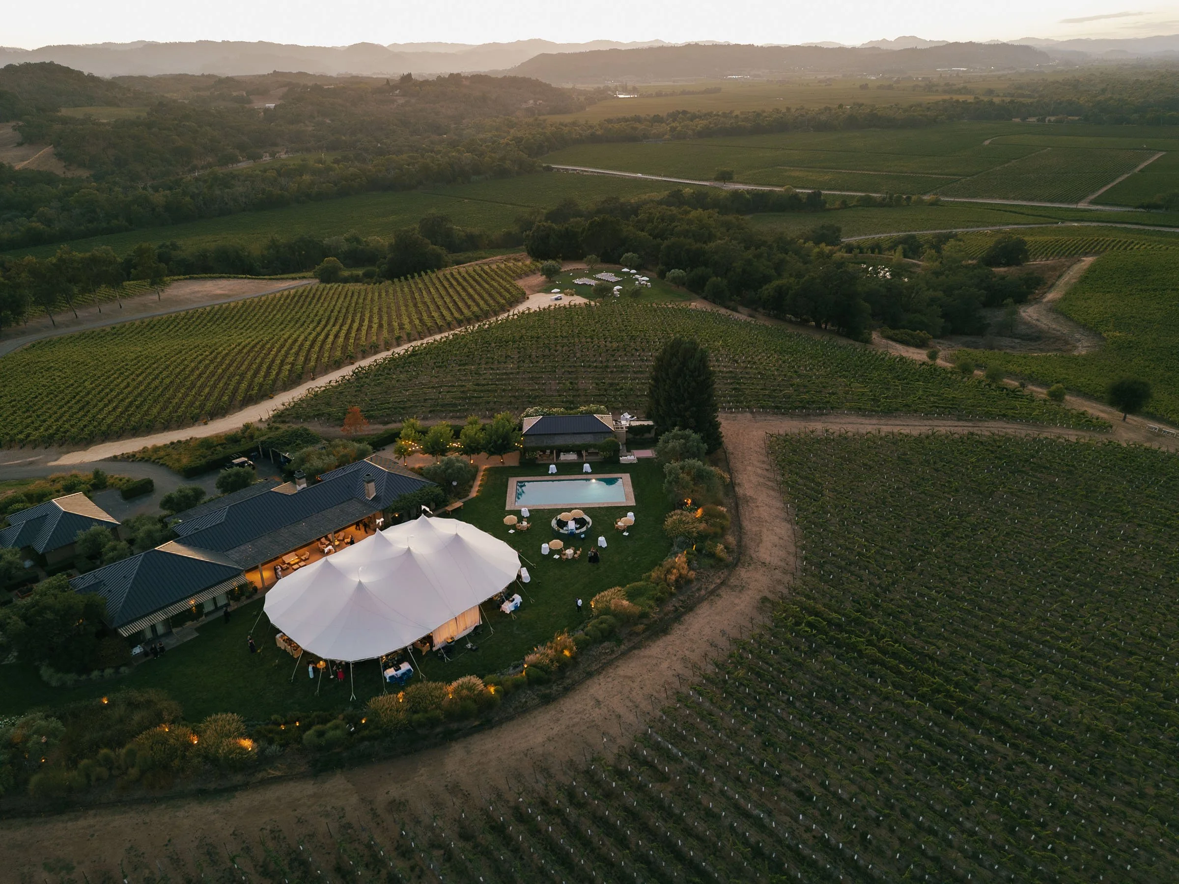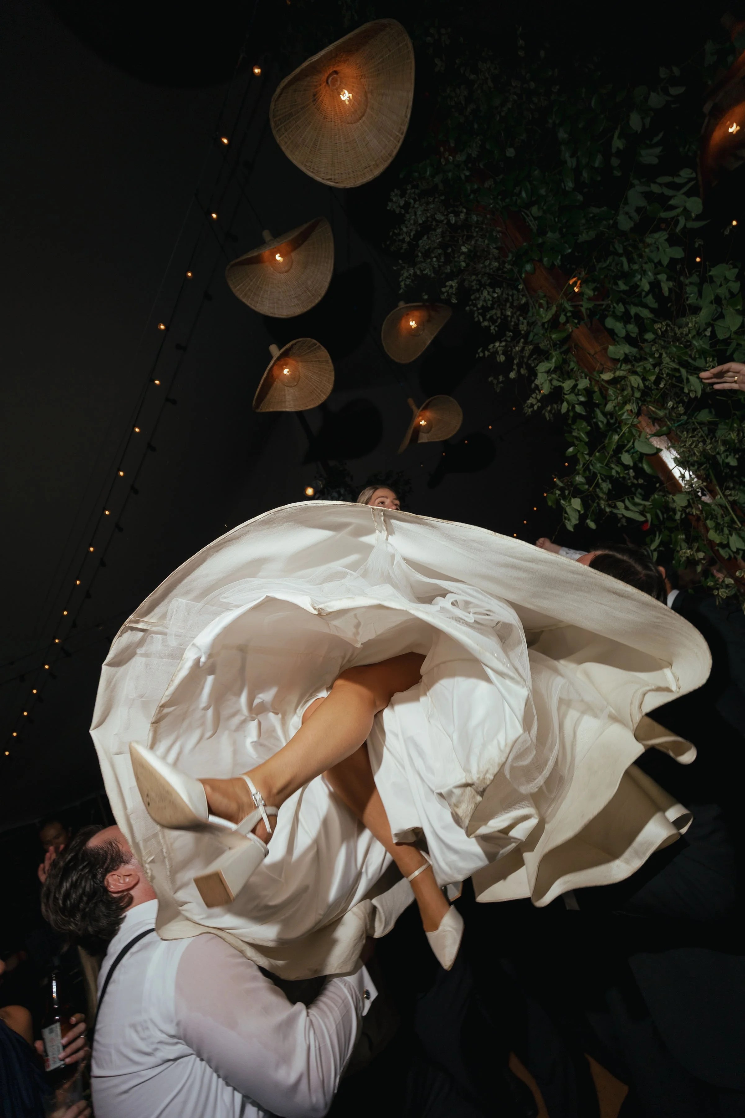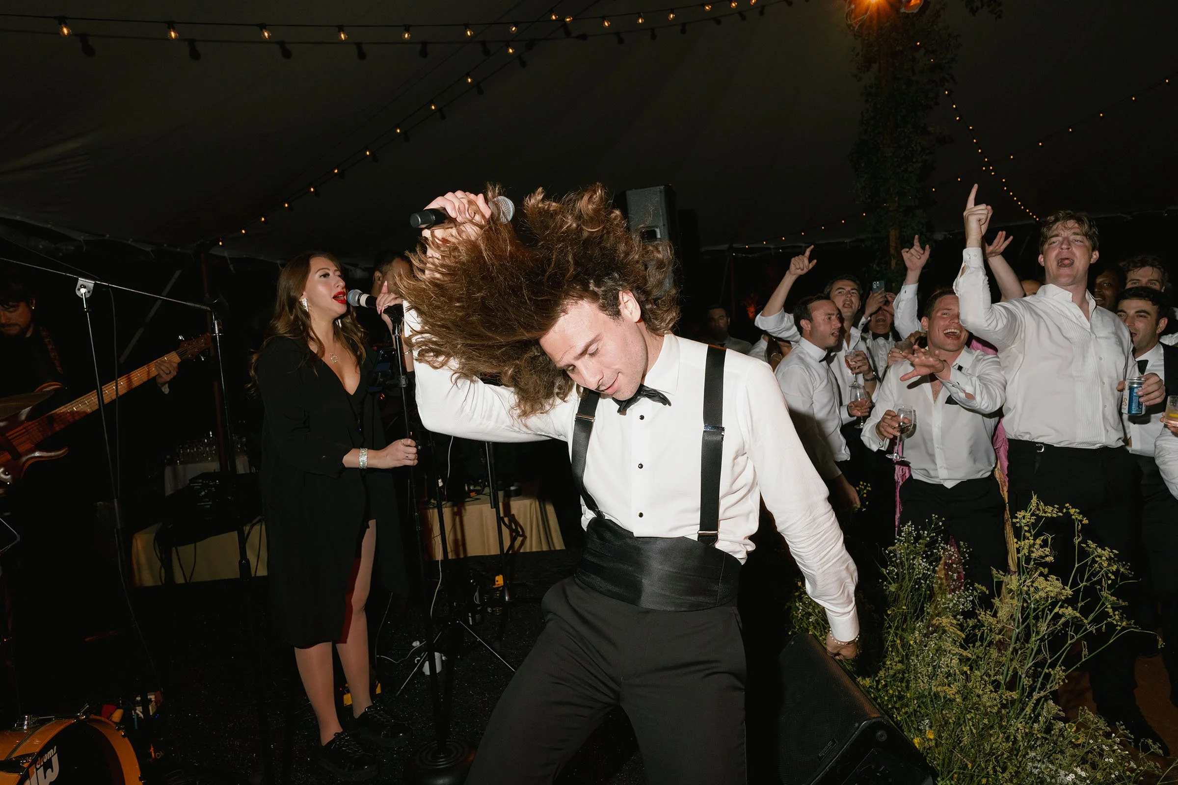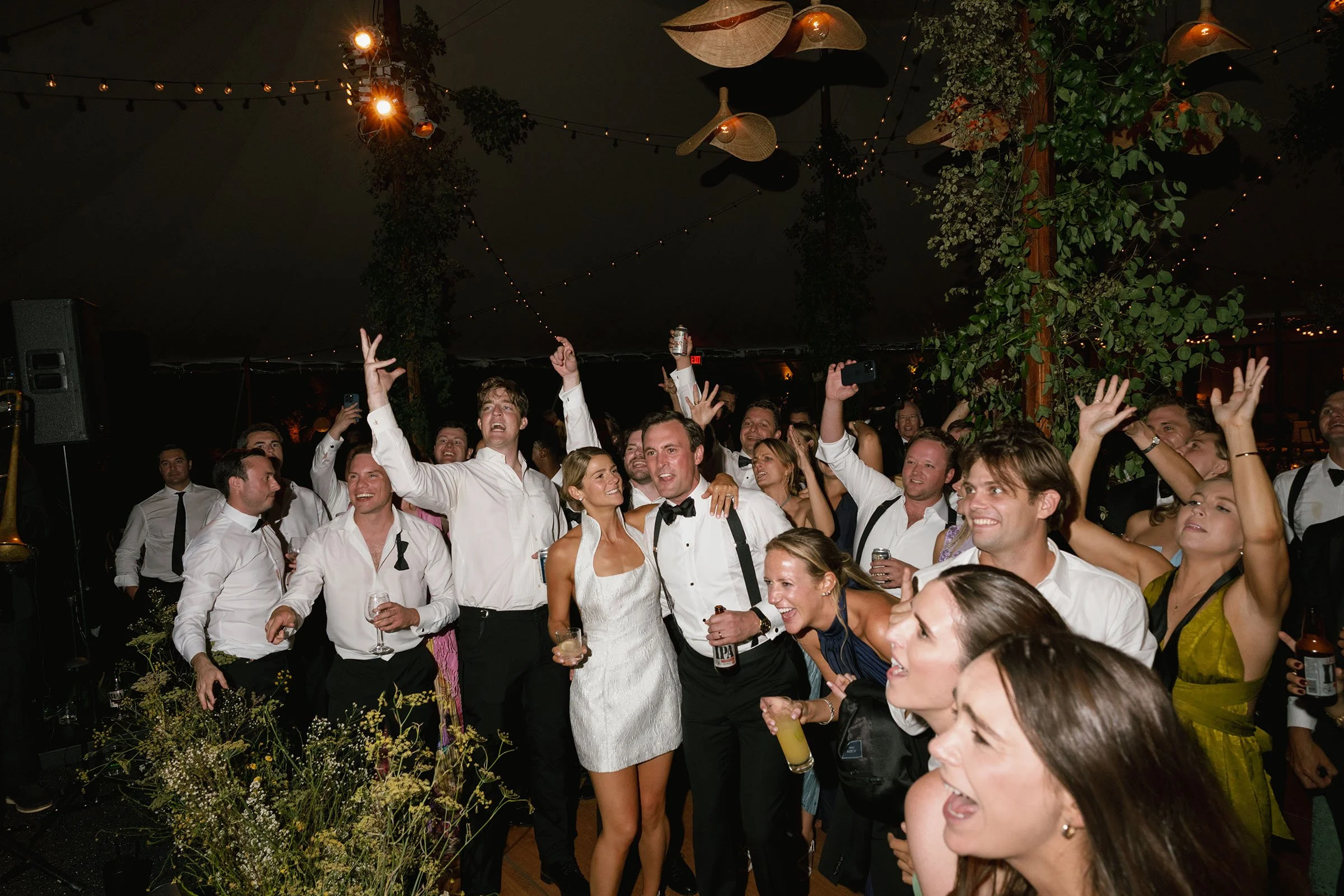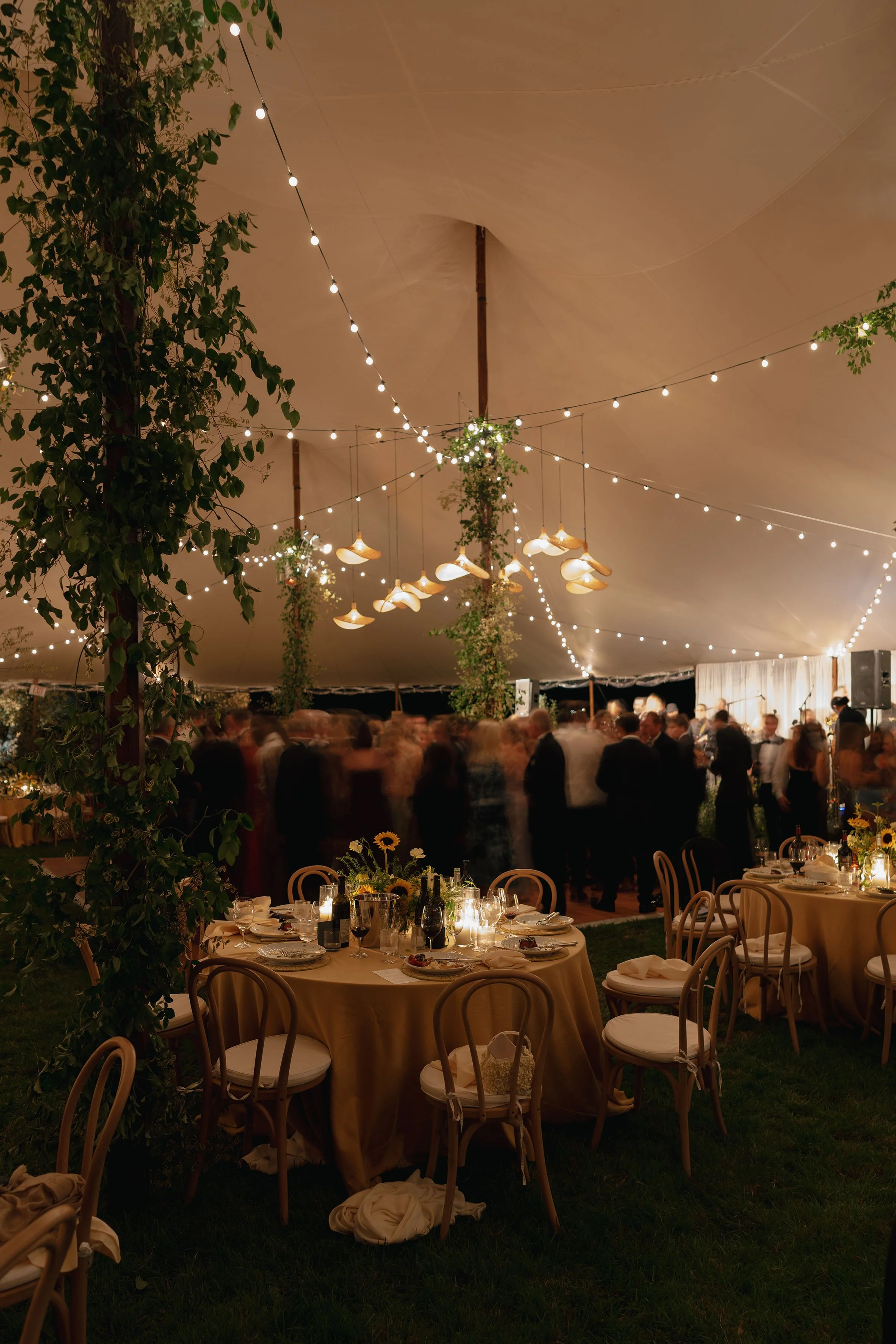 The design reimagined the space, extending the home into the surrounding landscape and creating areas that allowed guests to move easily between moments. Sunflowers, a personal favorite of the bride, were woven throughout, adding warmth and familiarity. As the evening progressed, the celebration gathered energy on the dance floor, with friends and family filling the space in a way that felt both personal and enduring.