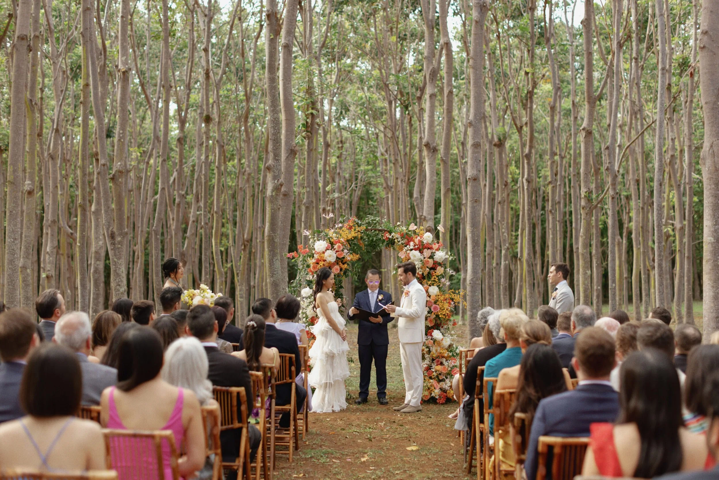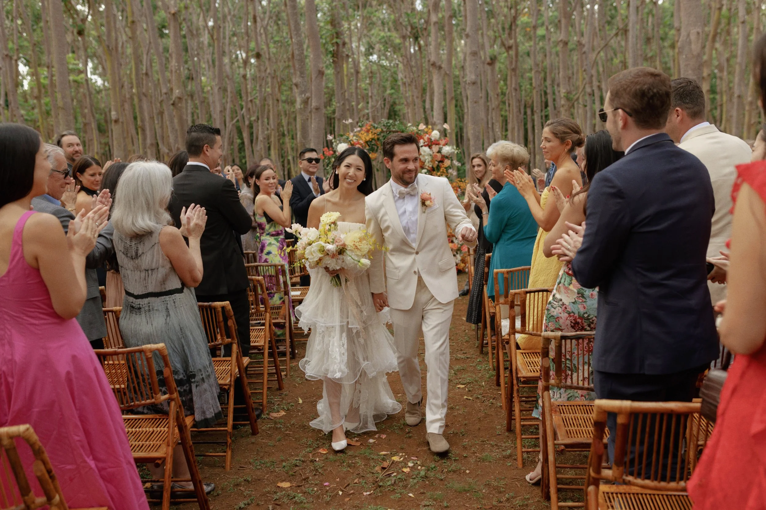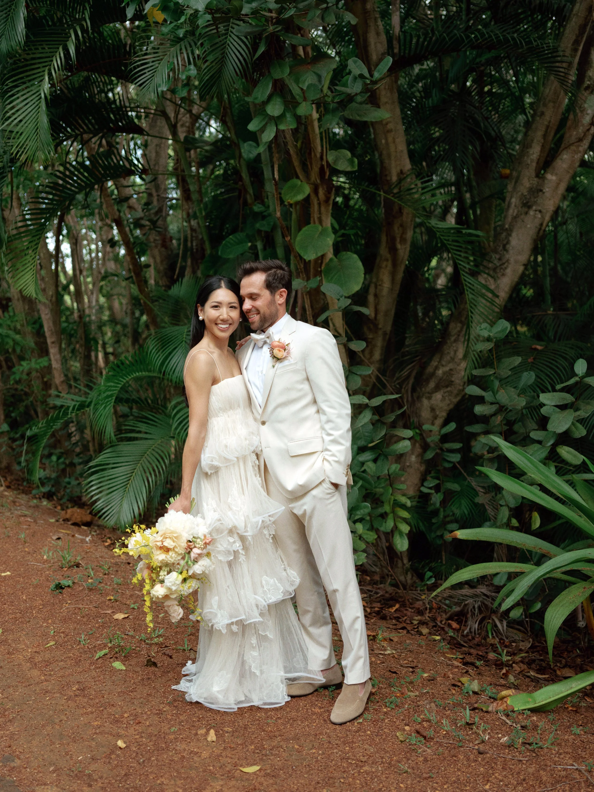 Set in Kauai, Sophia and Drew’s wedding unfolded as a multi-day gathering shaped by family, heritage, and the energy of the island. The weekend began with a series of events that brought guests into the experience early, including a welcome party with a traditional pig roast and a tea ceremony that honored their cultural backgrounds.