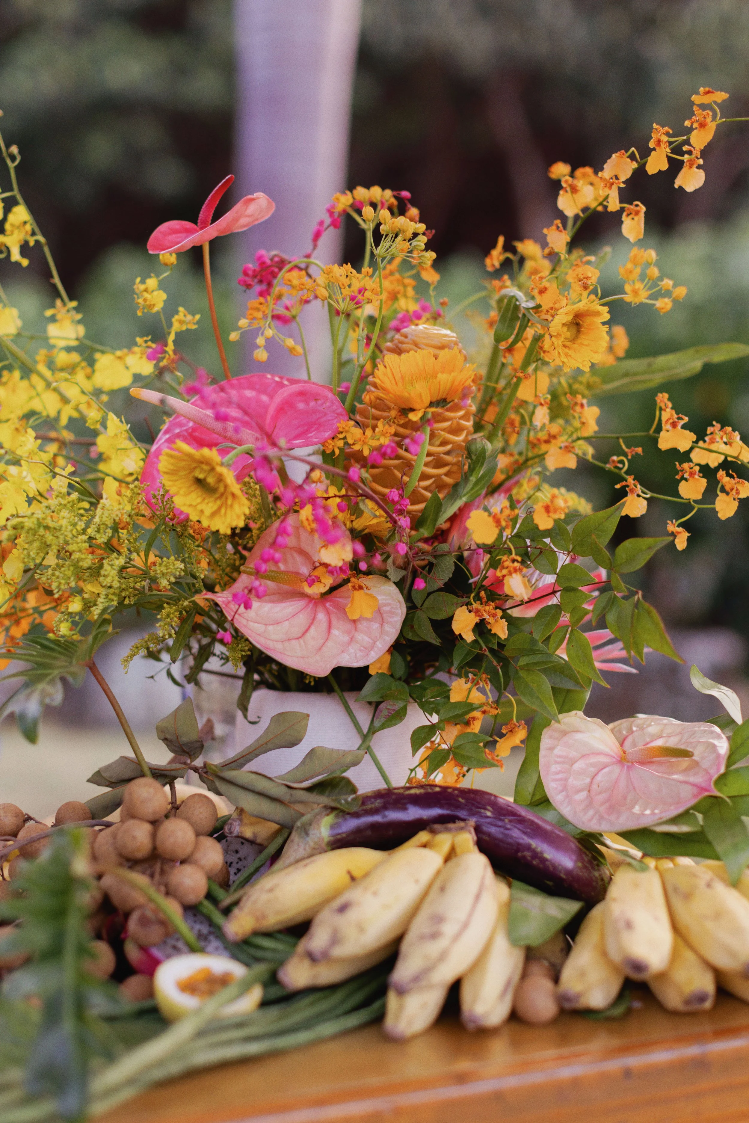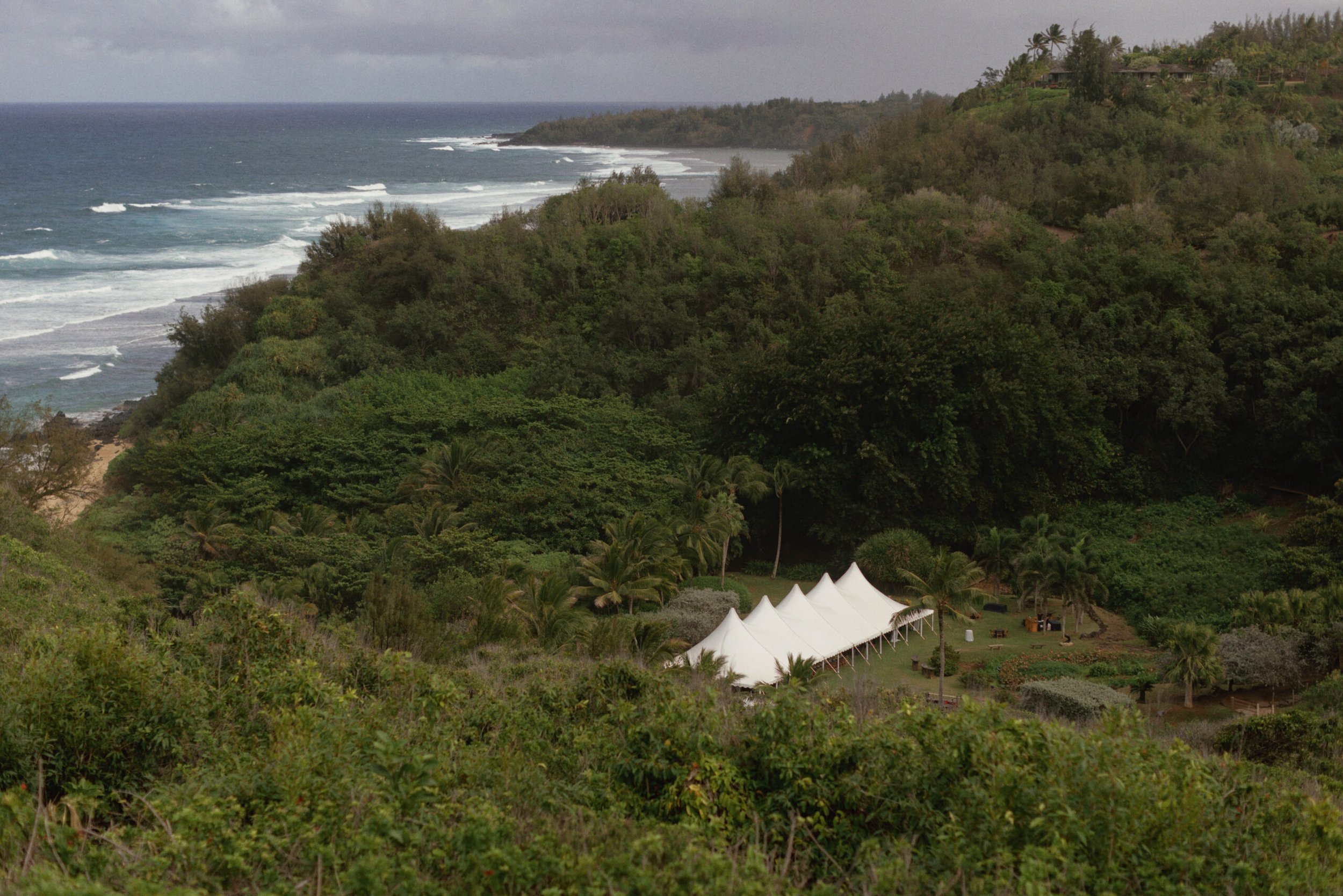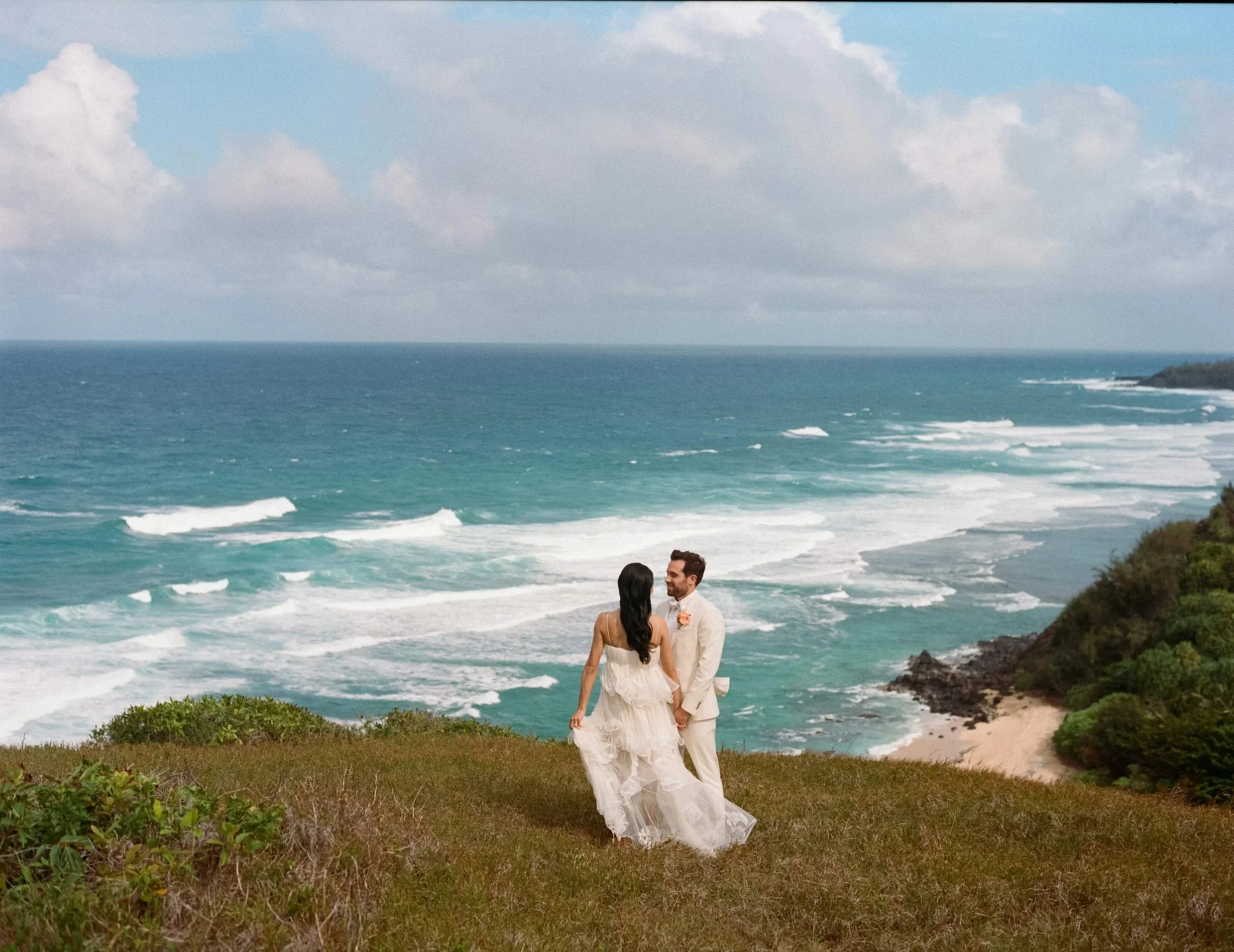 Set in Kauai, Sophia and Drew’s wedding unfolded as a multi-day gathering shaped by family, heritage, and the energy of the island. The weekend began with a series of events that brought guests into the experience early, including a welcome party with a traditional pig roast and a tea ceremony that honored their cultural backgrounds.
