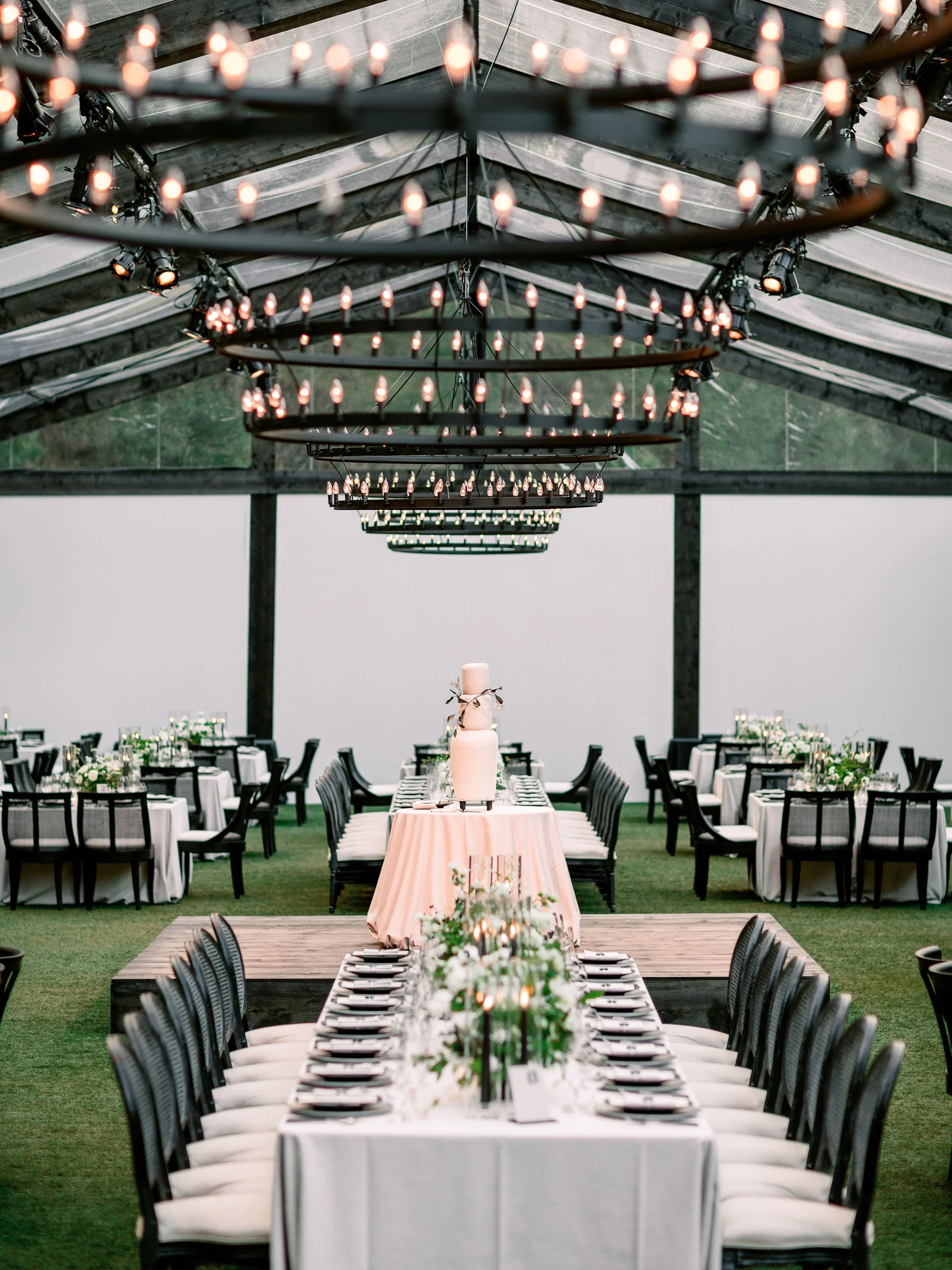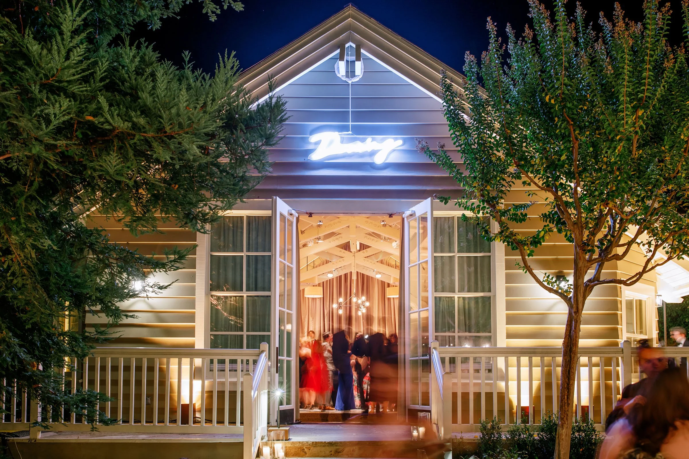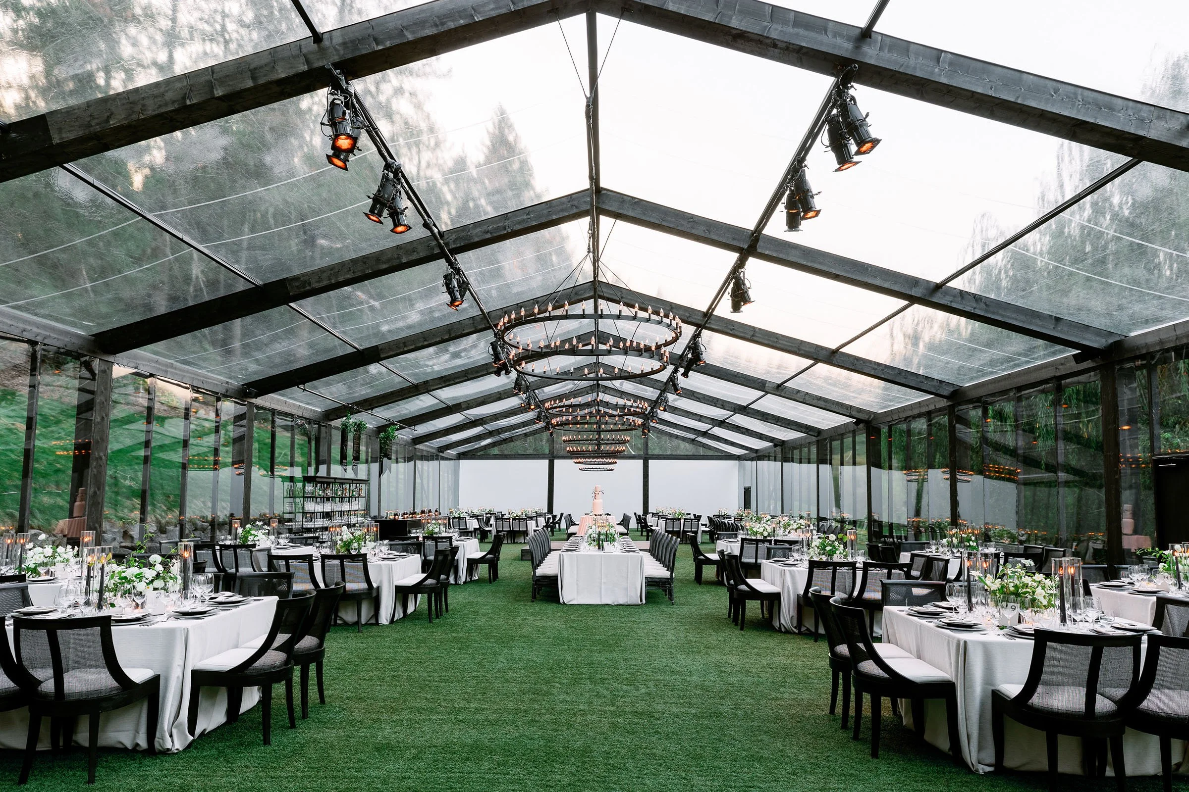 Custom-built elements shaped the environment, from a fully constructed tent with black-stained wood and cane detailing to an interactive entrance guests moved through as they arrived. When power was shut off across Napa Valley due to fire risk conditions, a coordinated plan allowed the celebration to run on generators. The evening unfolded seamlessly—guests dined, danced, and moved through the night, largely unaware anything had changed.