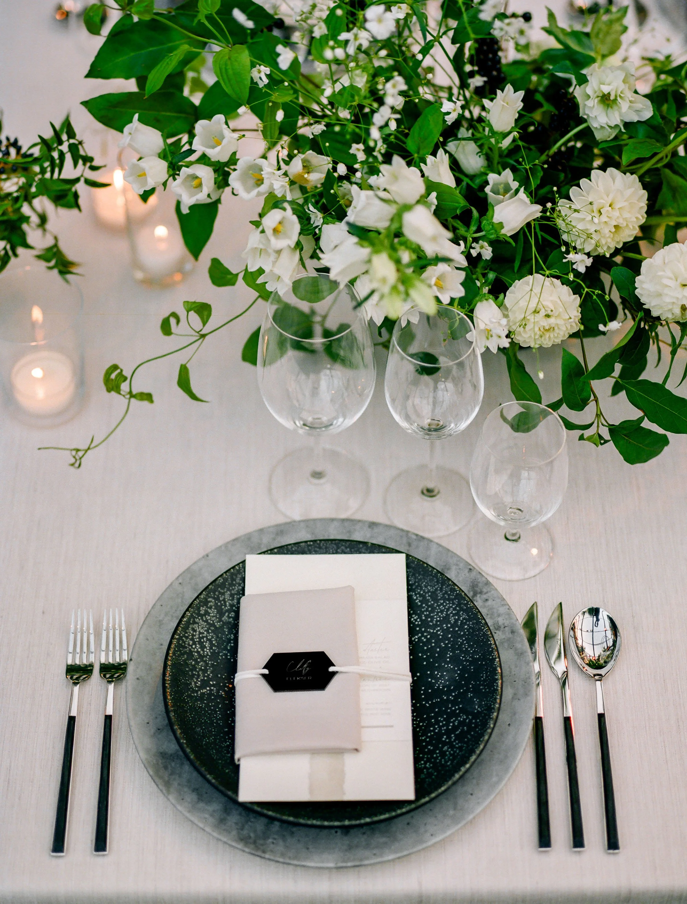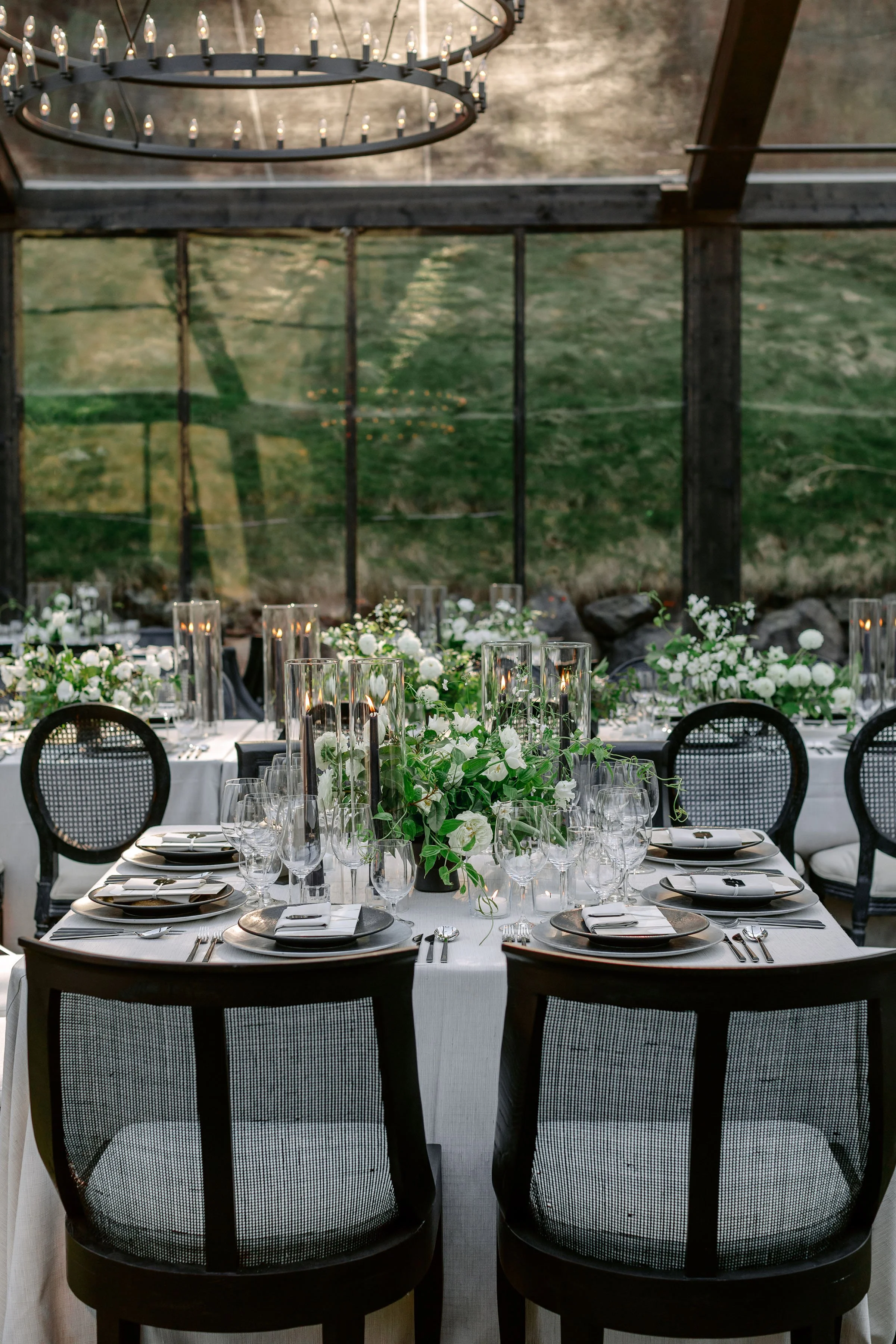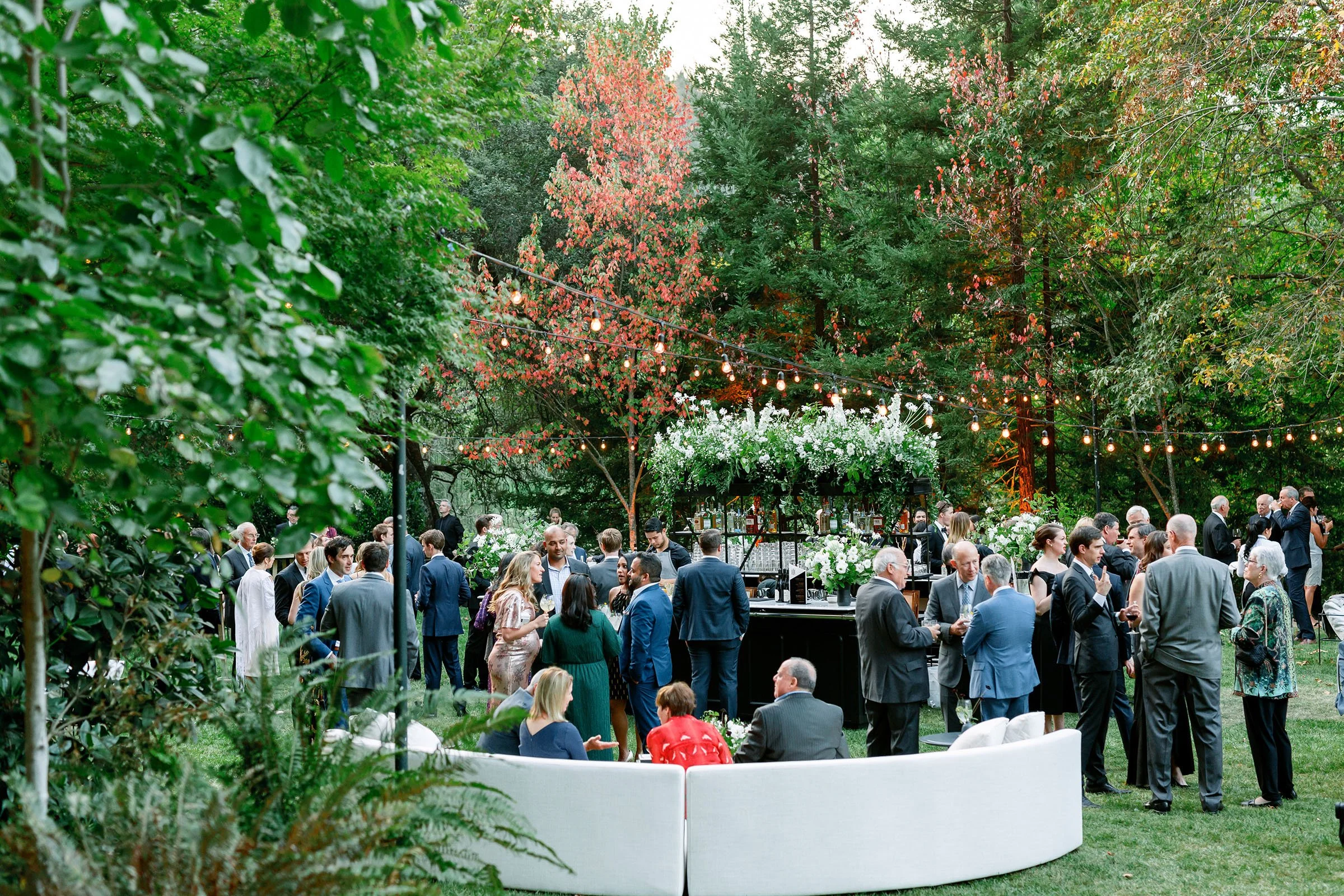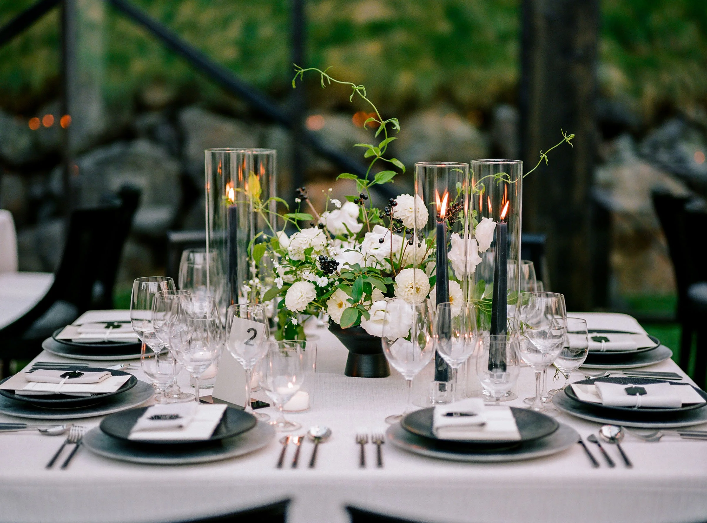 Custom-built elements shaped the environment, from a fully constructed tent with black-stained wood and cane detailing to an interactive entrance guests moved through as they arrived. When power was shut off across Napa Valley due to fire risk conditions, a coordinated plan allowed the celebration to run on generators. The evening unfolded seamlessly—guests dined, danced, and moved through the night, largely unaware anything had changed.